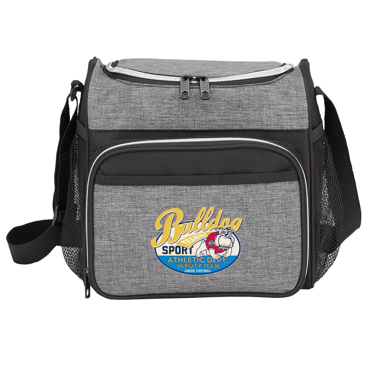 12-Can Heather Cooler Bag – Affordable, Practical & Brand-Ready. This favorite Cooler Bag delivers the perfect balance of quality, style, and value, making it a top choice for both everyday use and brand promotion. This best-selling cooler is ideal for carrying lunch, beverages, or snacks—perfect for work, recreation, or on-the-go lifestyles. Key Features: Fully insulated, waterproof main compartment holds 12 cans plus ice, zippered front pocket with additional front slip pocket, 2 side mesh pockets for accessories, adjustable shoulder strap, stylish heathered material for an on-trend look. Why It's a Top Seller: Practical for lunches, outings, and casual events. Popular across a variety of industries including schools, logistics, manufacturing, finance, insurance, sales, and recreation. High visibility imprint area makes it an effective and lasting promotional item. Whether it's used at work or on the weekend, this cooler bag keeps your brand front and center. Samples available